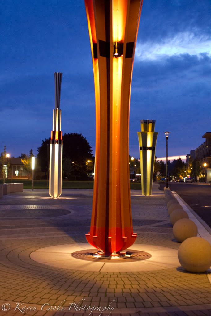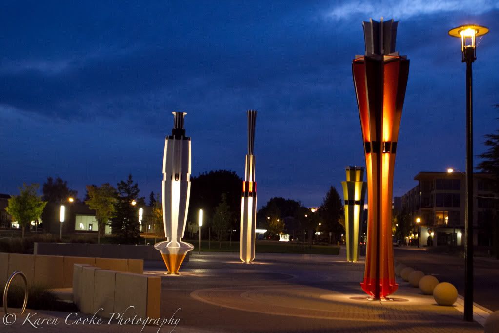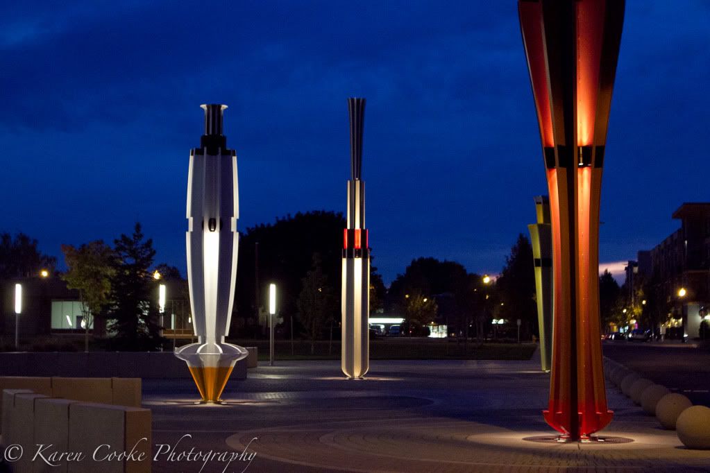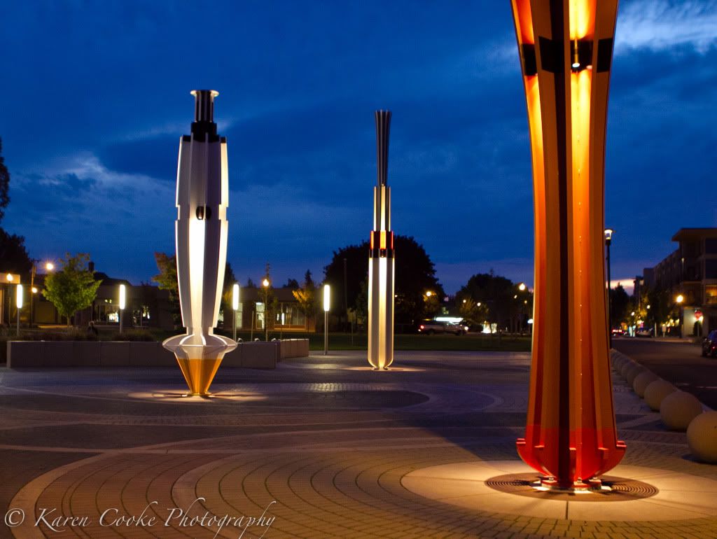 While the park opened awhile ago, last night was the first time I'd really spent any time there. I hadn't seen it after dark really until last night. It is fantastic! I took these photos at twilight last night.